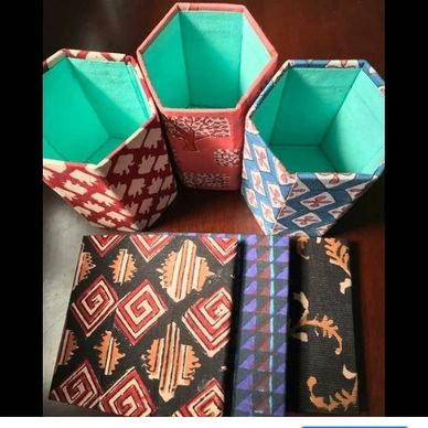 We supply handcrafted stationery such as pen stands, journals, folders, pouches and planners.