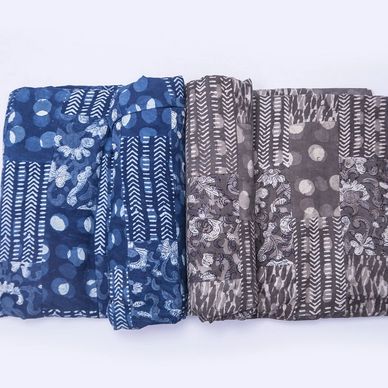 Products are hand block printed, hand-dyed, handmade, handwoven, or tied and dyed, and plain cotton fabrics.